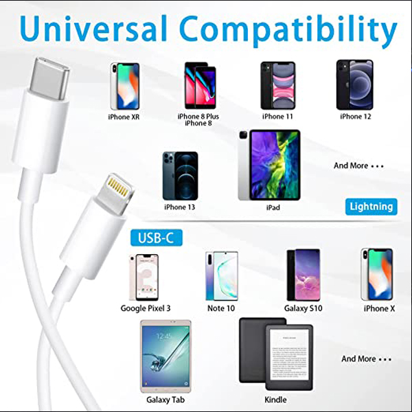 سازگار با آداپتورهای ۲۹، ۳۰، ۶۱ و ۸۷ واتی اپل برای شارژ سریع دستگاه هایی مانند iPad Pro، iPhone ۸، iPhone ۸ Plus و iPhone X